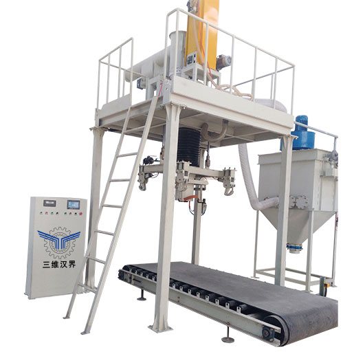 大袋包裝機(jī)的稱重方式采用毛重式稱重,不使用稱量斗,物料直接進(jìn)入包裝袋內(nèi)。吊耳裝置多為4個(gè),含有內(nèi)袋的噸包袋則需要加裝吹袋裝置,在物料進(jìn)入包裝袋前,吹袋裝置先將包裝袋吹開,然后在下料,防止物料在進(jìn)入包裝袋的過程中形成死角,無法滿載包裝,甚至造成內(nèi)袋撕裂;除塵機(jī)構(gòu)可使包裝機(jī)在包裝粉狀物料保證生產(chǎn)環(huán)境干凈舒適。